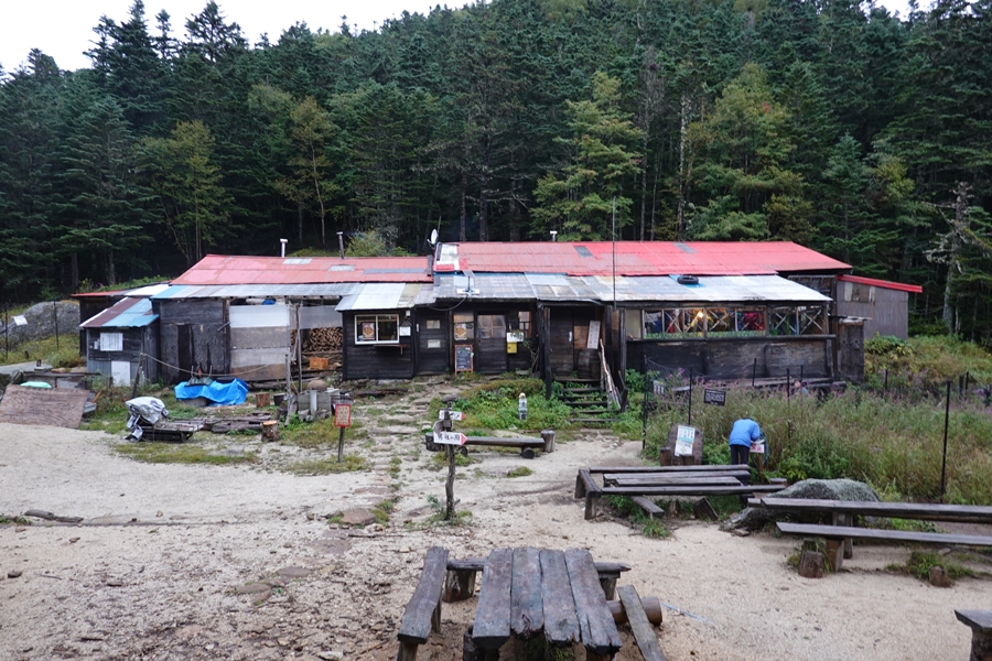 南御室小屋で受付。建物は古いですが、売店や喫茶は意外と充実してました。 |