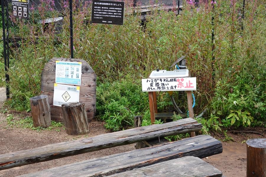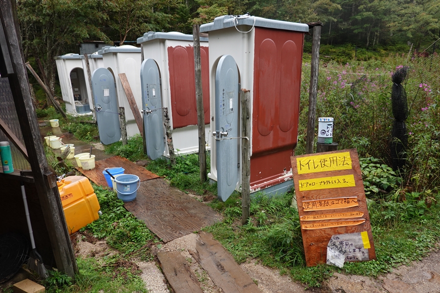 小屋の前にある水道。流れっぱなし、汲み放題の南アルプスの天然水。 |