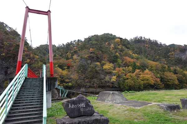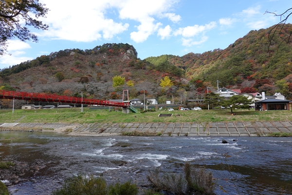 橋を渡って矢祭山を振りかえる |