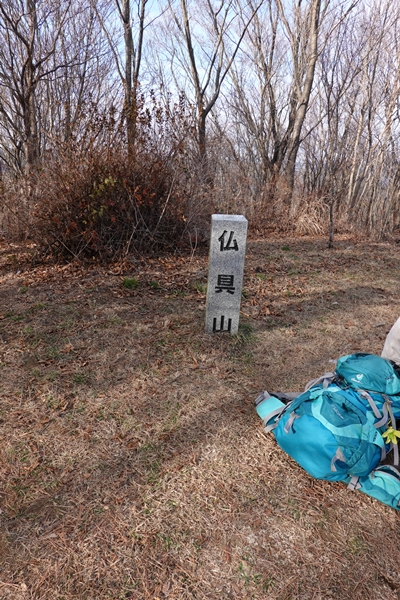 山頂到着。 ずっと林の中の同じような道を歩くので写真が少ない。。 |