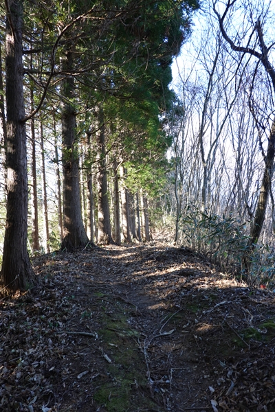 杉林の中を歩く。 |