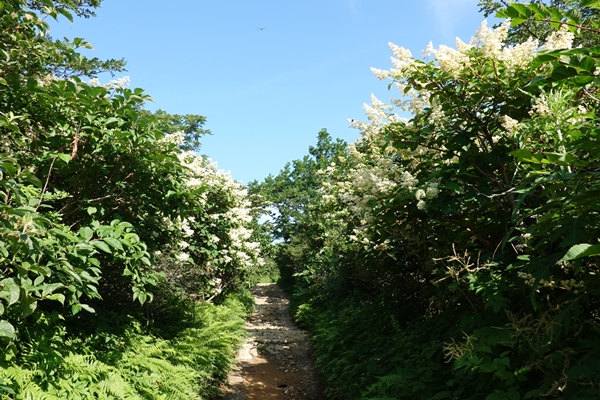 勢至平の分岐から峰の辻へ。 木陰で風があると涼しくなってありがたい。 |