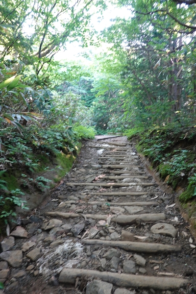 久し振りの山歩きで、傾斜の緩い馬車道から登ります。 |