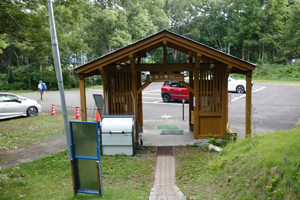 登山口。 登山届を回収されている方がいらっしゃいました。 |
