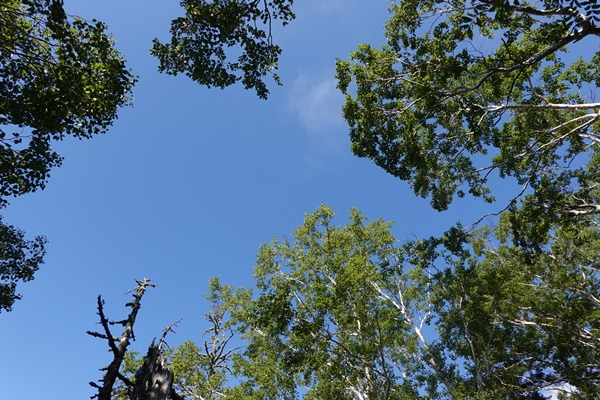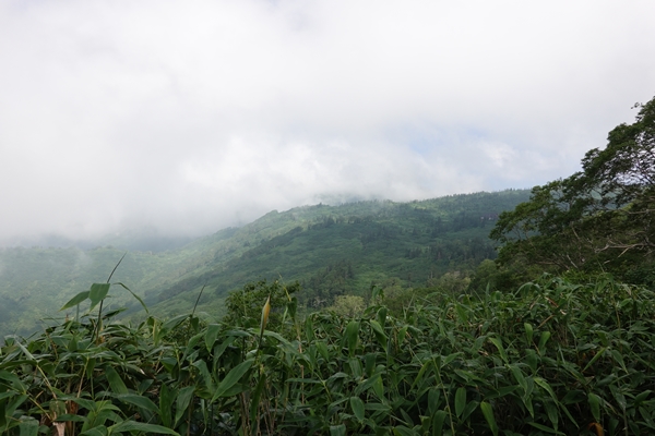 たまに木々の合間から展望もありますが、ほとんど木々の中を黙々と登る。 陽が当たらず涼しいのは良かったけれど。 |