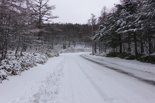 スキー場から車坂峠まで車道を歩く。 |