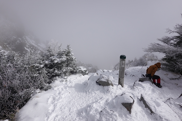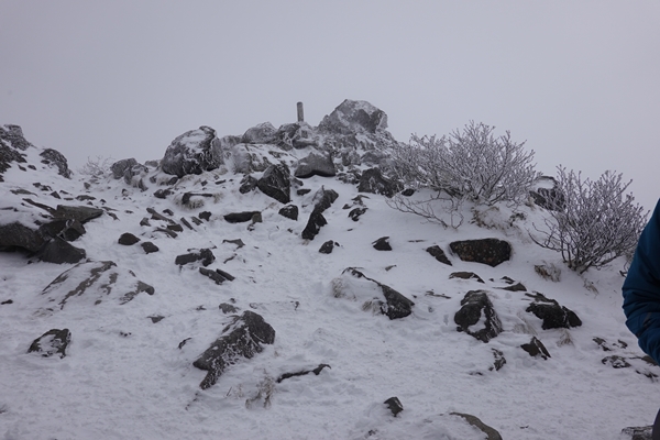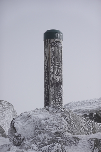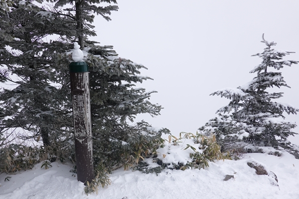 黒斑山山頂。 真っ白で何も見えず、残念。。。 |