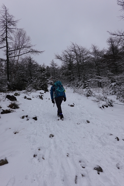 最初アイゼンなしで歩き始めましたが、途中でつけました。 |