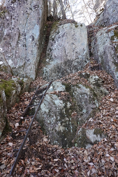 登りで気付かなかった奥ノ院直下のハシゴ。 |