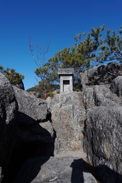 もう一登りして山頂到着。 小手姫神社は岩が御神体とのこと。 |