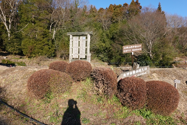 堀切登山口(上)。 こちらにも登山ポストと新年のあいさつ文がしっかりありました。 |