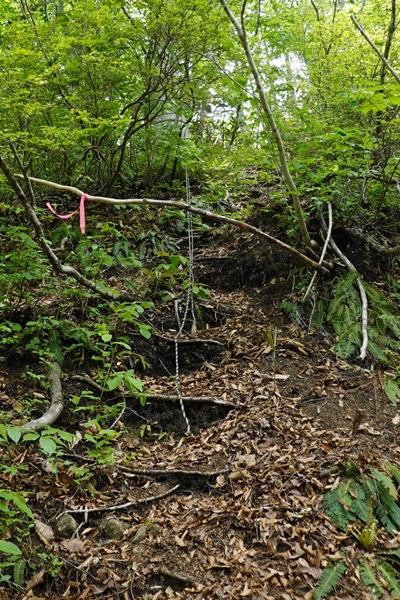 山頂直下のロープ・・2か所。 ここは急でした。 |