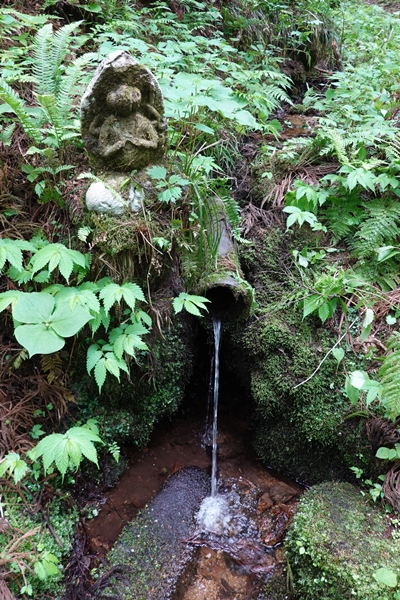 大岩観音との分岐。 石像と水場。 |