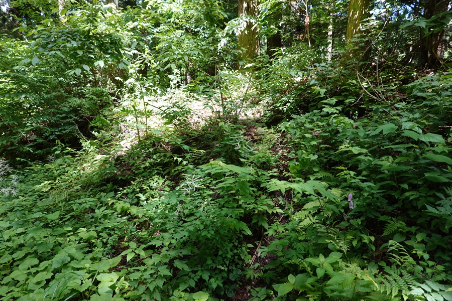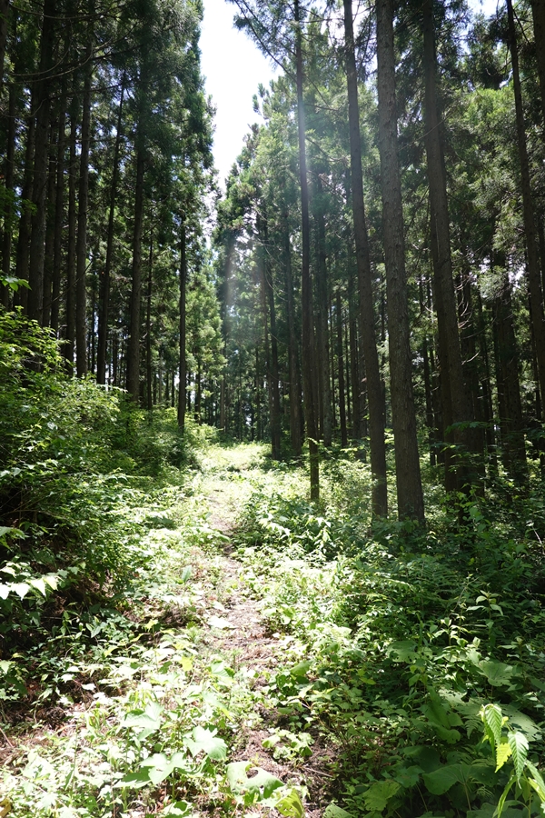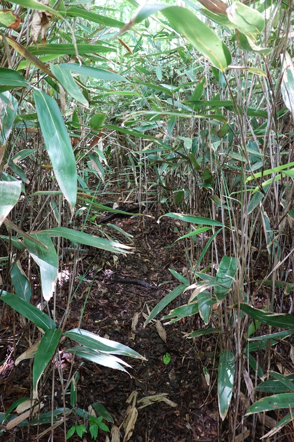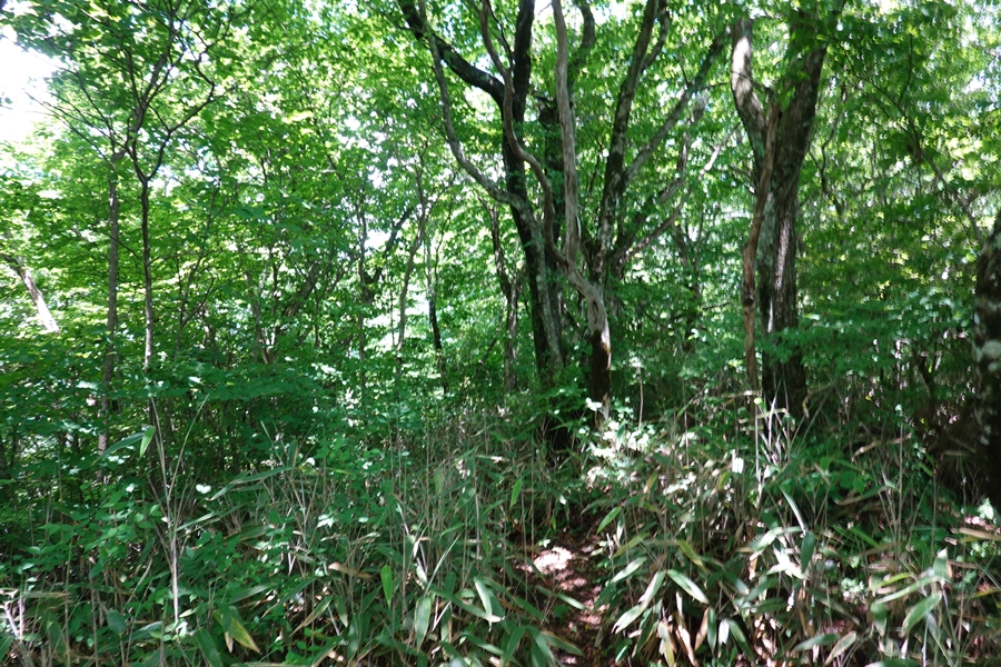 伐採地を過ぎると林の中に戻りますが、笹の中の道も。 |