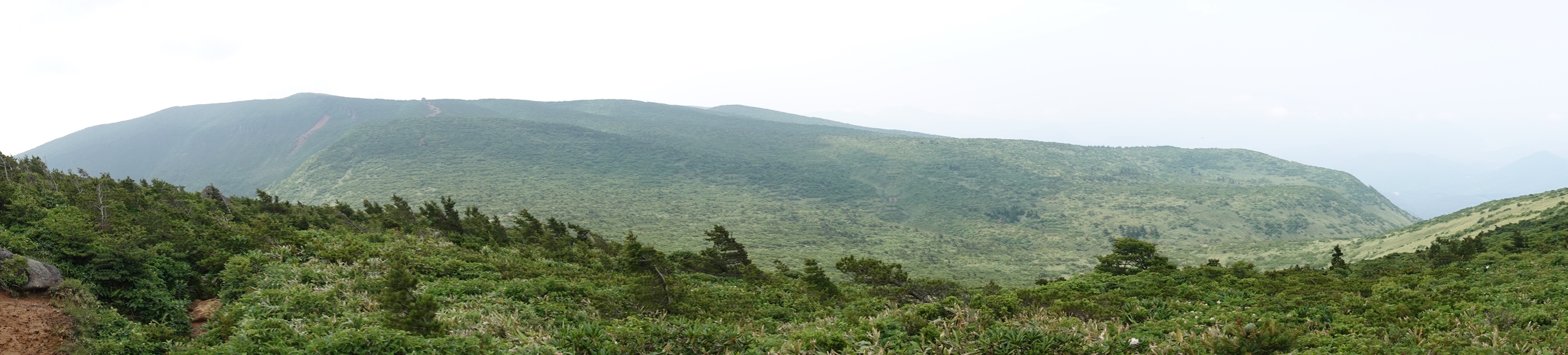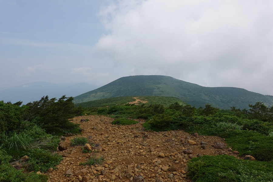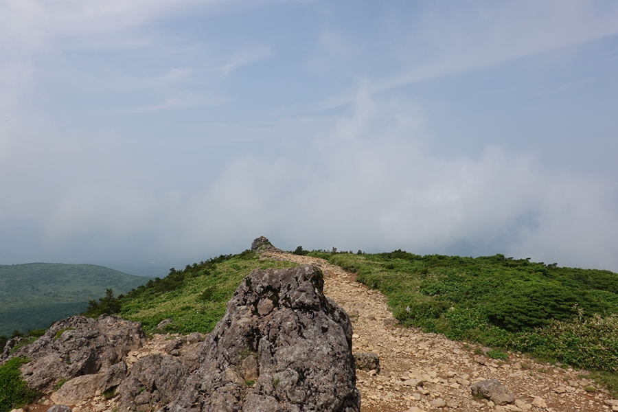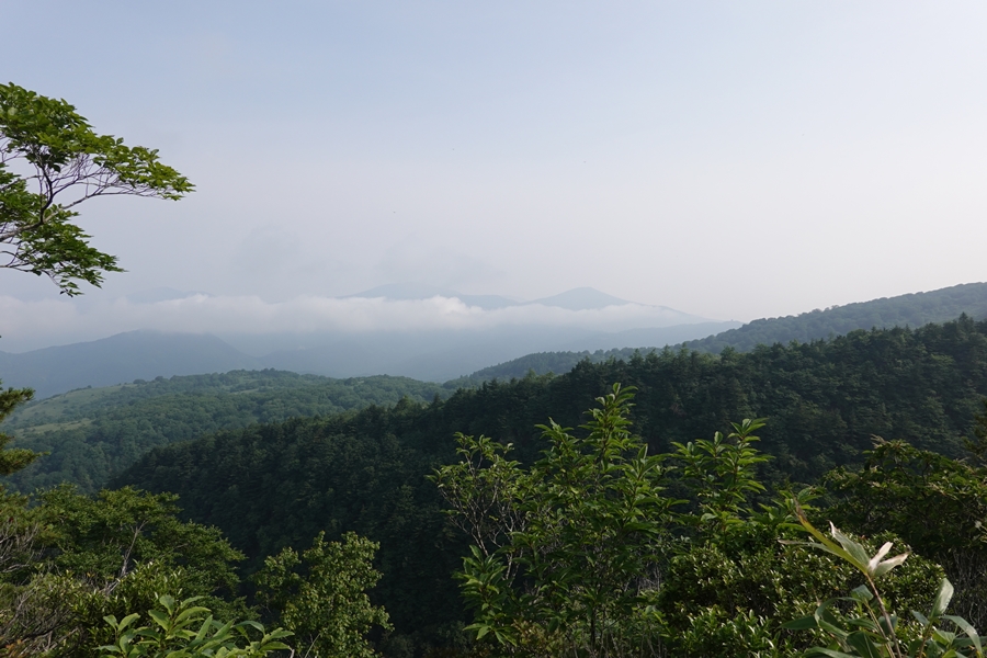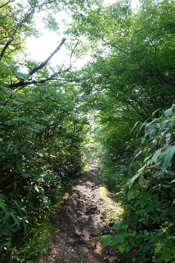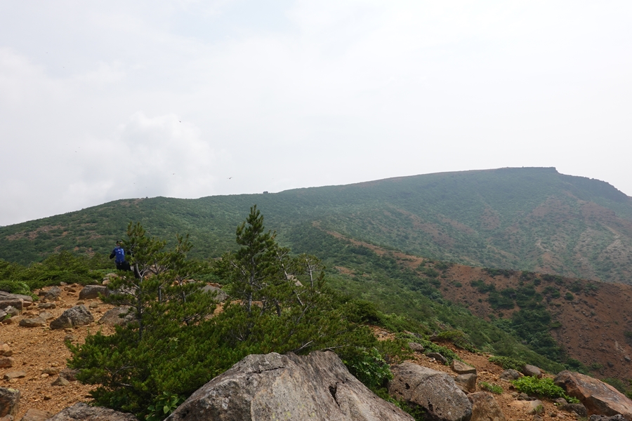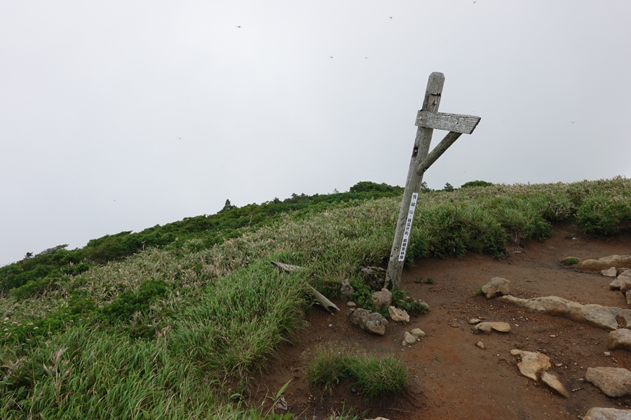 沼ノ平はそろそろ見納め。 下山したいのに、このあたりまで1600m以上の尾根道が鉄山避難小屋あたりから延々続いていて、全然標高が下がらなくて心が折れそうでした。 |