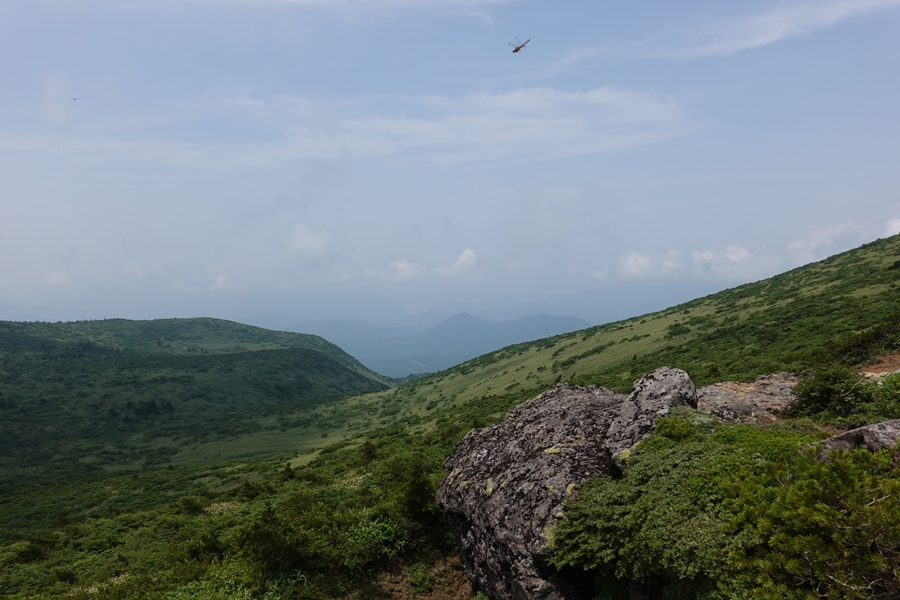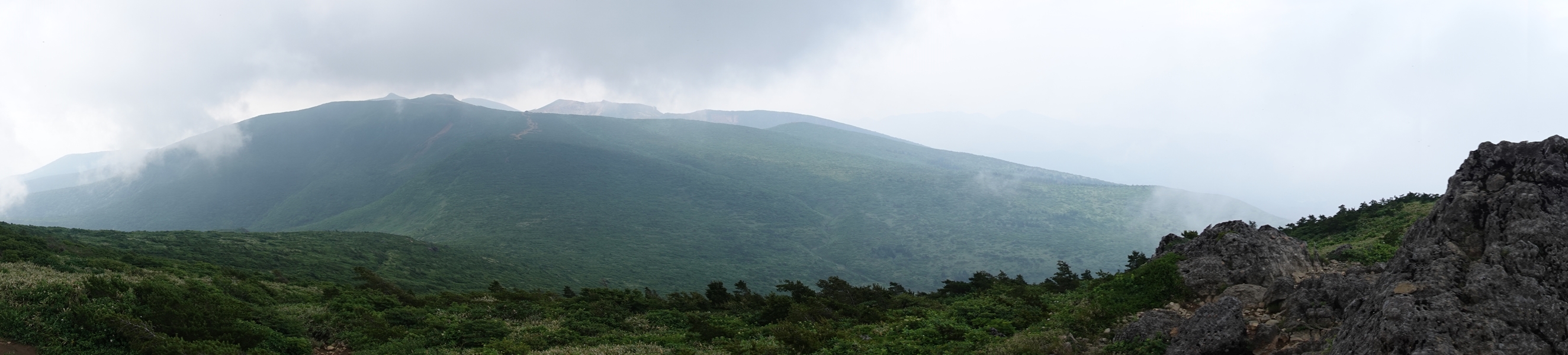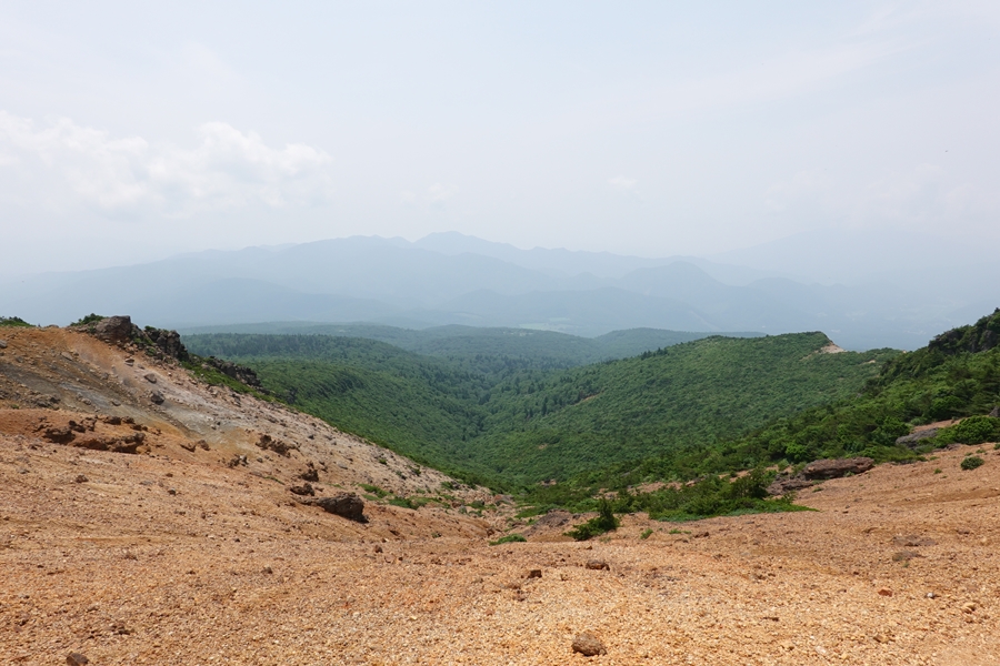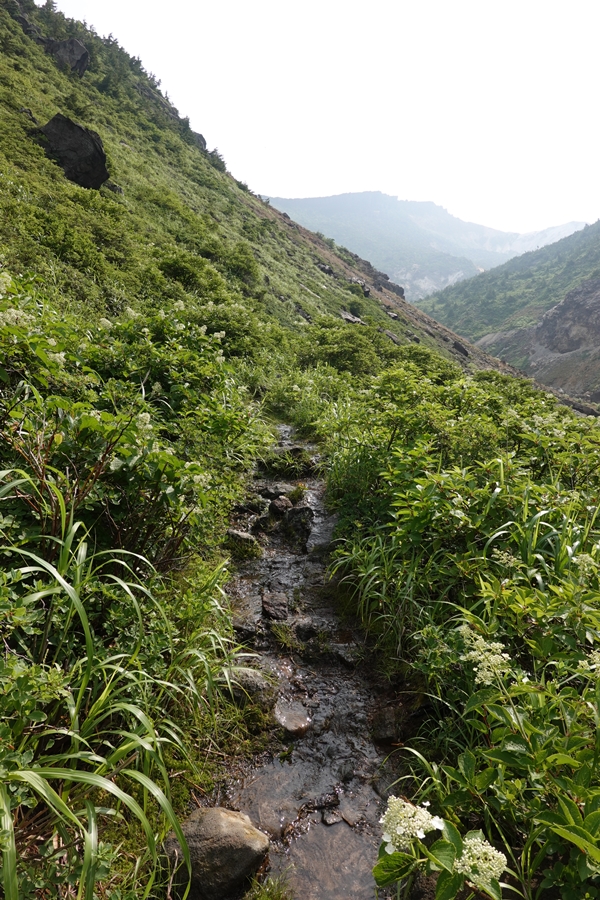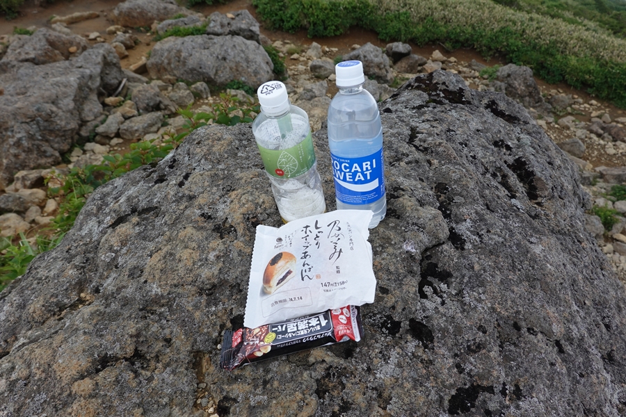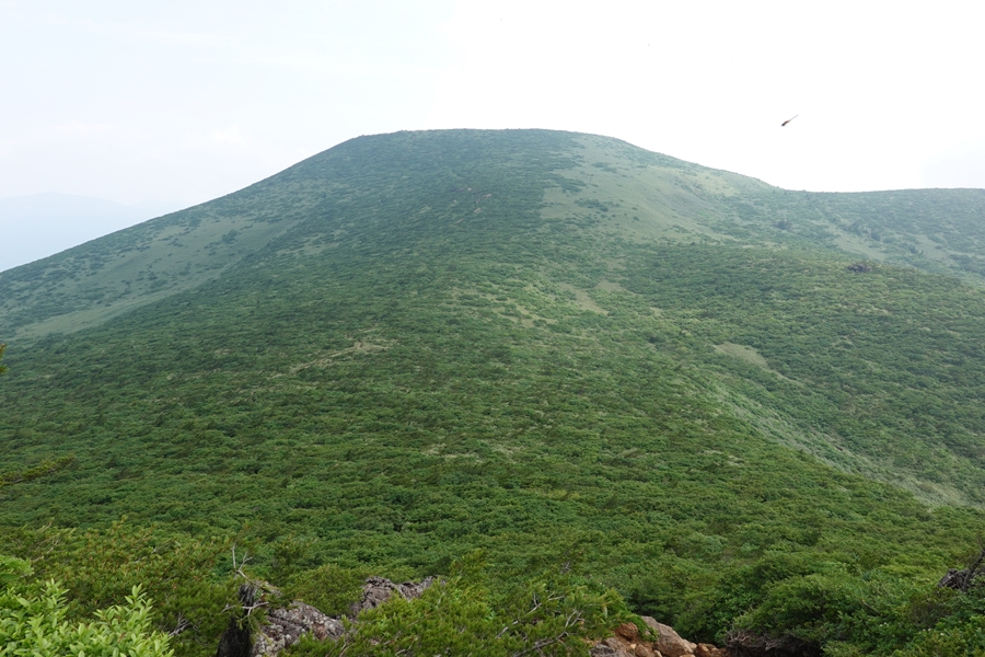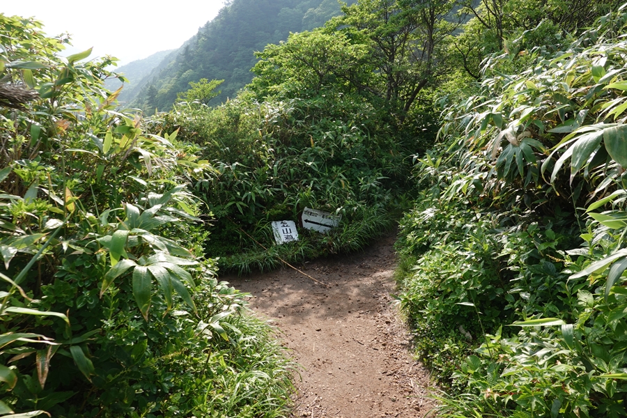 沼ノ平はそろそろ見納め。 下山したいのに、このあたりまで1600m以上の尾根道が鉄山避難小屋あたりから延々続いていて、全然標高が下がらなくて心が折れそうでした。 |