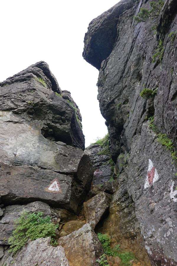 胎内岩くぐりのポイント。 この少し奥ですが、くぐるのも狭いので前回同様に岩をよじ登ったのですが、前回より苦労したのは7年の月日のせいか、、 |