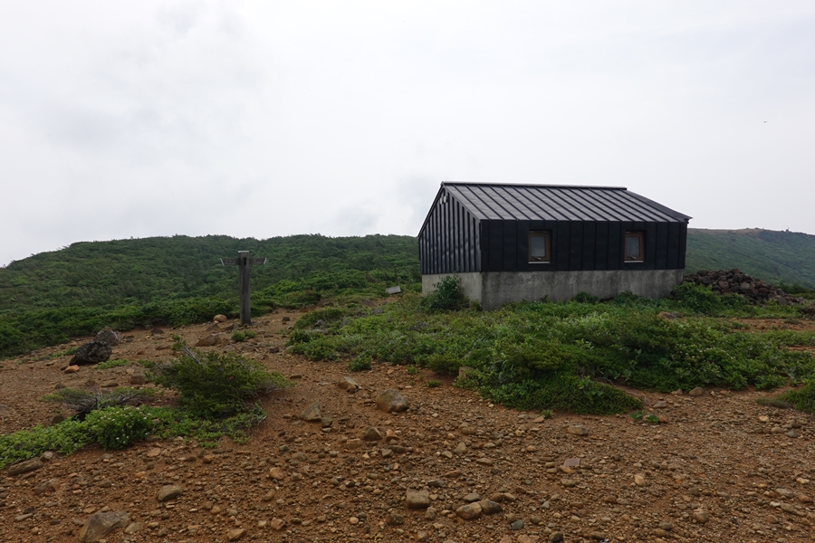 鉄山避難小屋に到着。 ここから安達太良山に向かうつもりでしたが・・ |