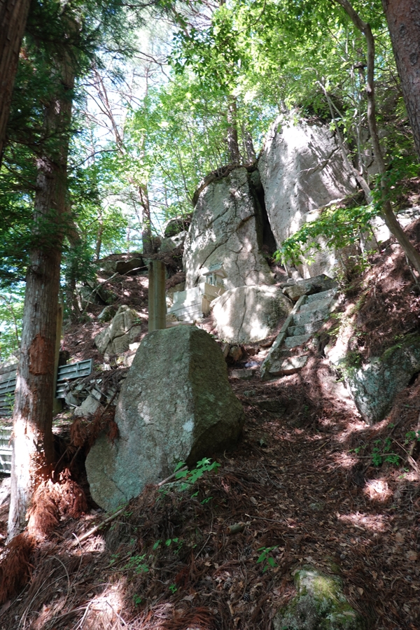 祠の右側から降りてきました。 こちらはロープ場がありましたが、こちらの方が安心かもしれません。 |