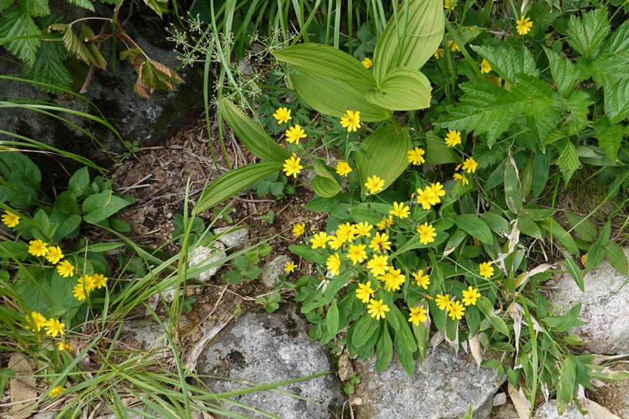 このあたりの斜面は花が沢山咲いてました。 シナノキンバイとハクサンフウロかな。 |