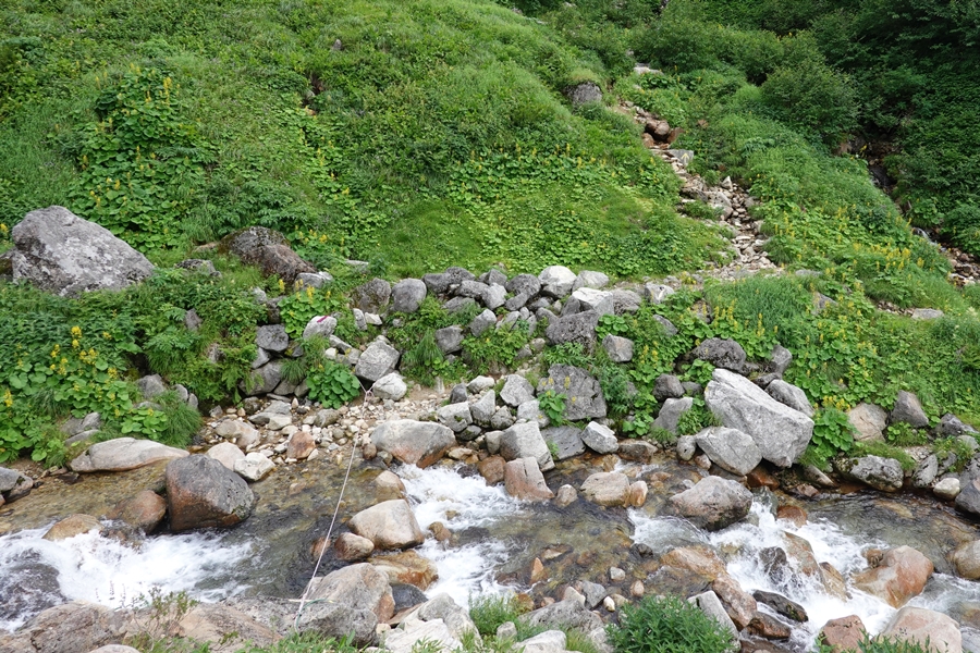 カールの中でも水が流れているところがいくつもありました。 残り少ない雪解け水? |