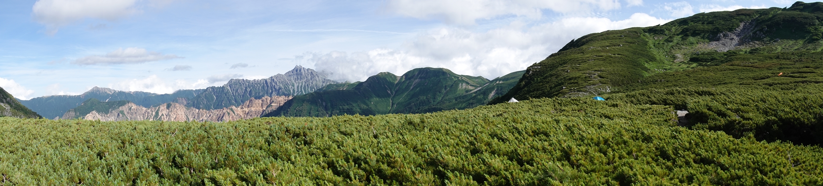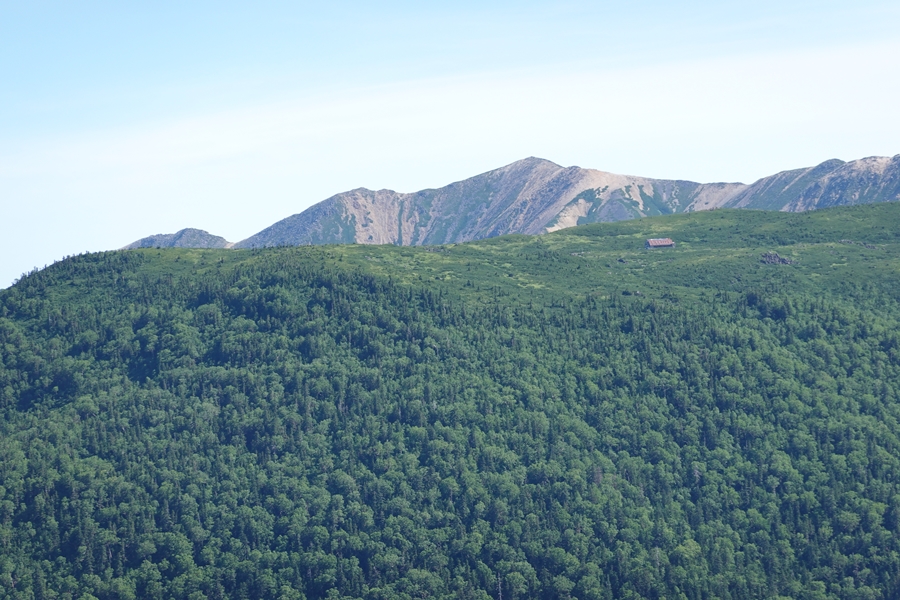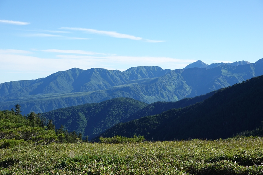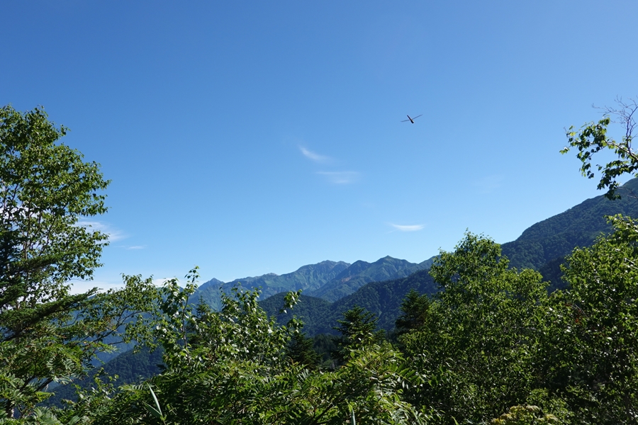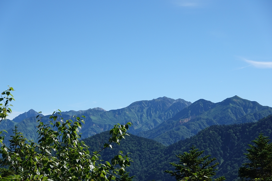 ここからだと槍はほとんど隠れていて、穂高の方が顔を出してました。 |