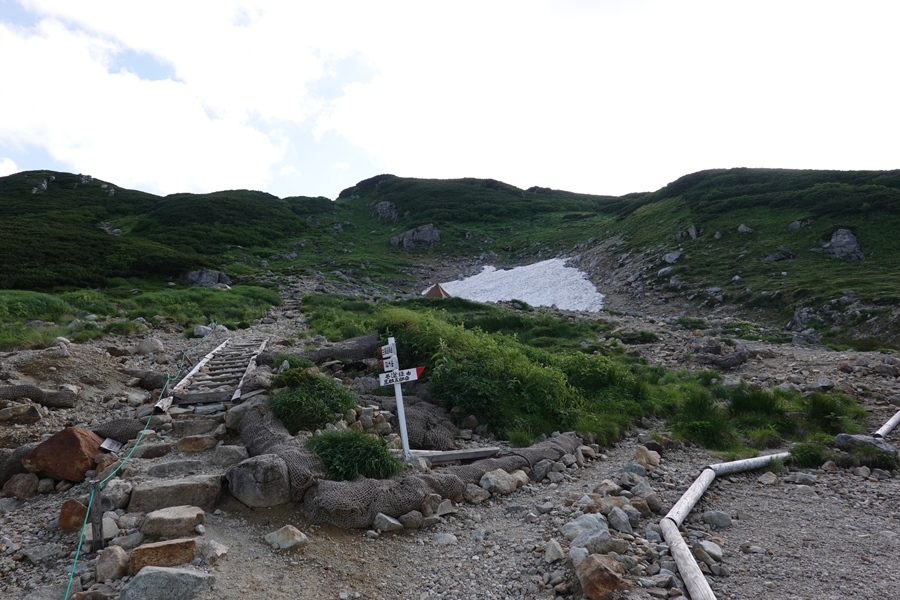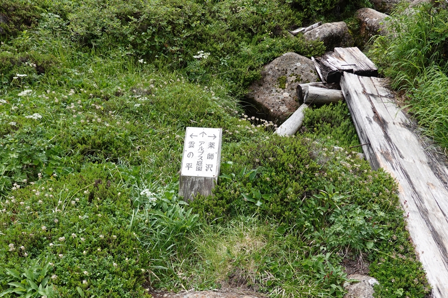 雲ノ平キャンプ場との分岐 |