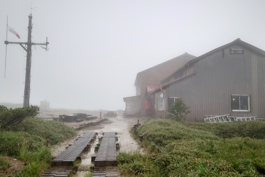 小屋に到着。 雨だけでなく風もすごくなってきました。 |