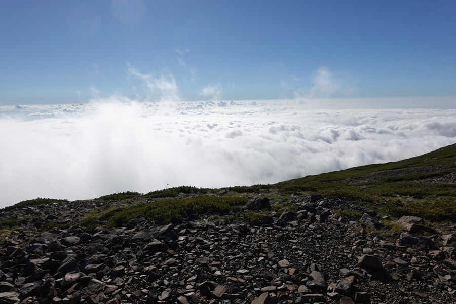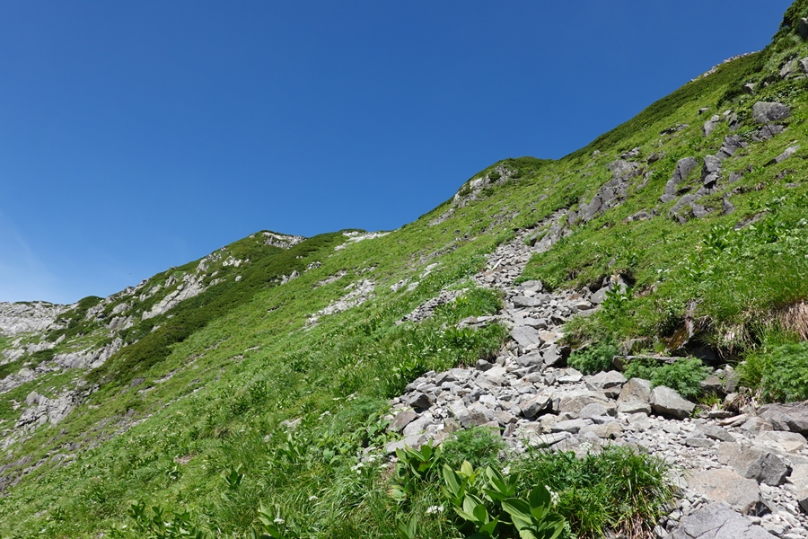 カールのふちの急登を登っていくと、 |