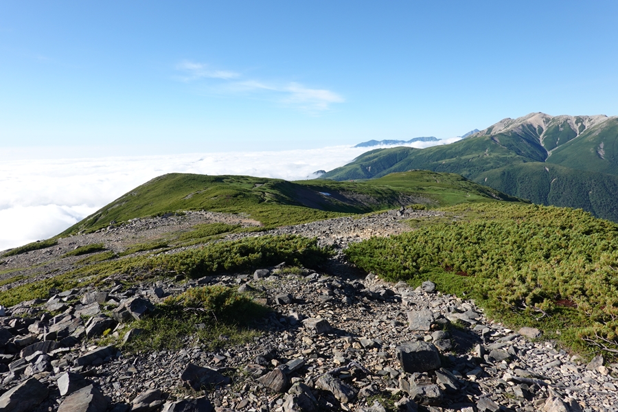 赤木岳を超えて最後のピーク、北ノ俣岳。 まだあるのと妻からクレーム・・ですよね〜、、 |