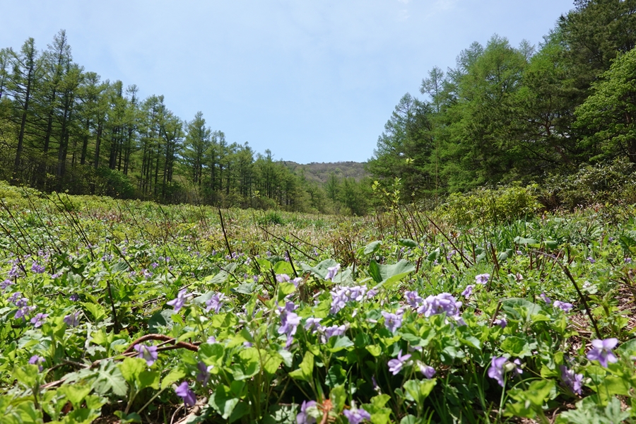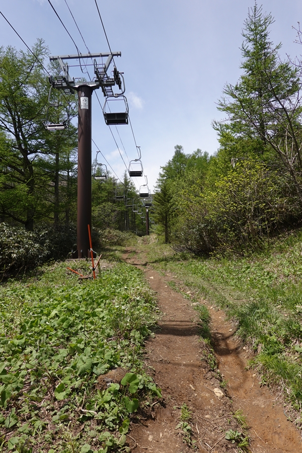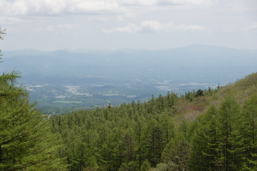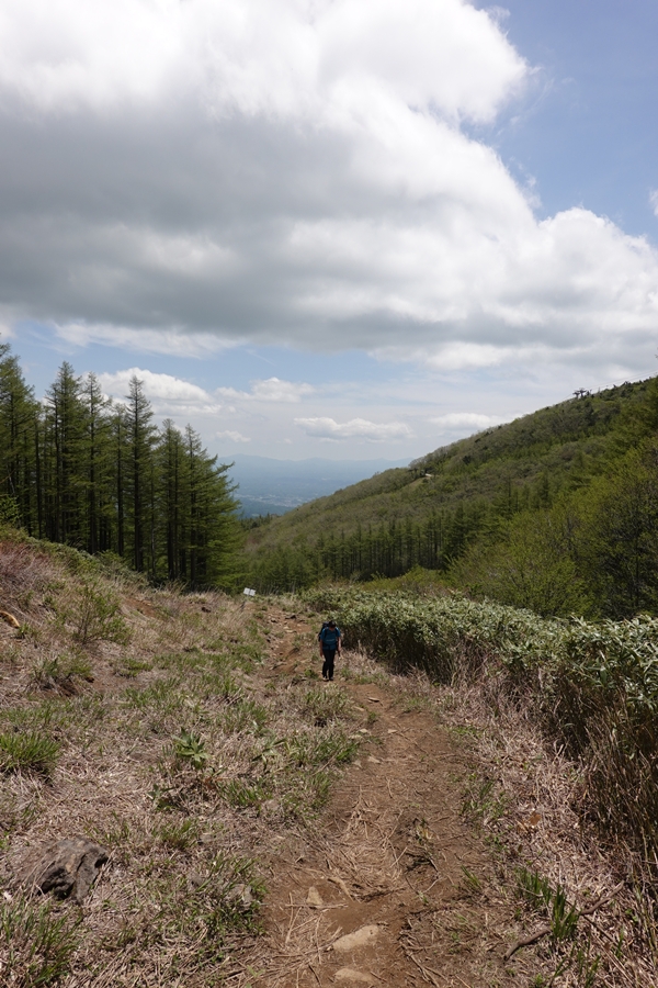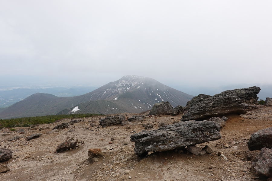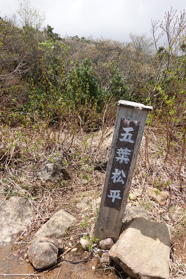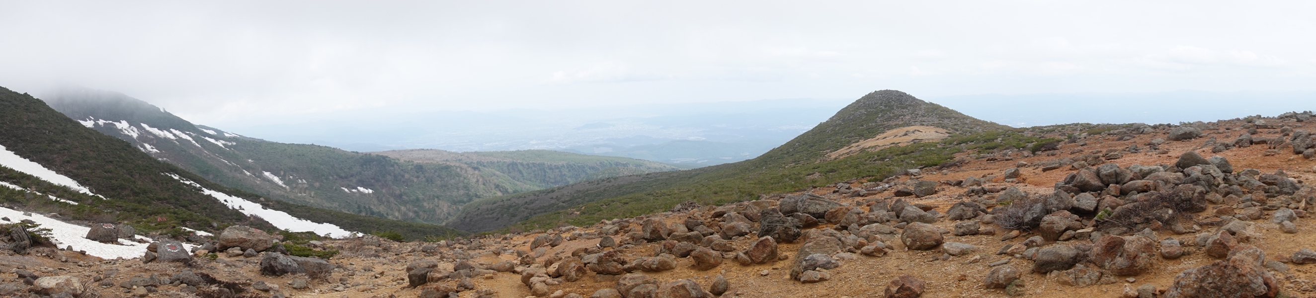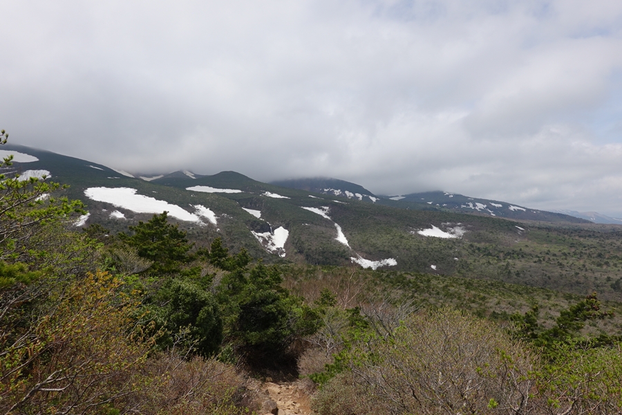 雪解け水はこの残雪から。 二本松方面は見晴らし良くていいですね〜。 |