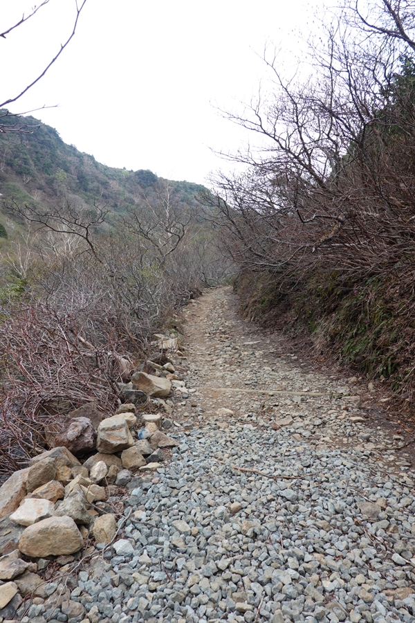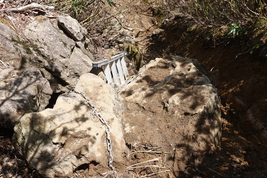 旧道を下りてきました。 だんだんえぐれていたのが、えぐれすぎて側道が出来ているところが増えてました。 |