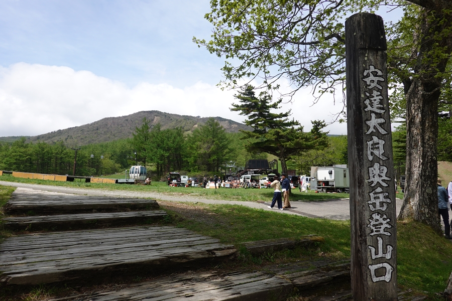 上の方は満車。ずいぶん安達太良山人気だな〜、今日はスタートが遅いからかな、と思ってました。 |