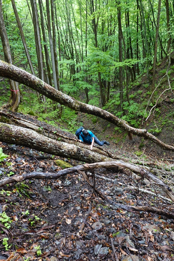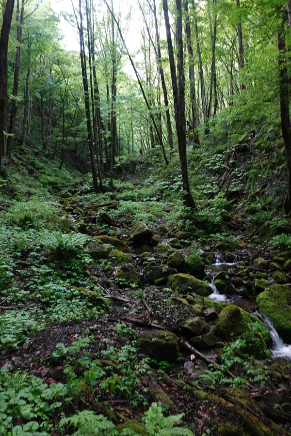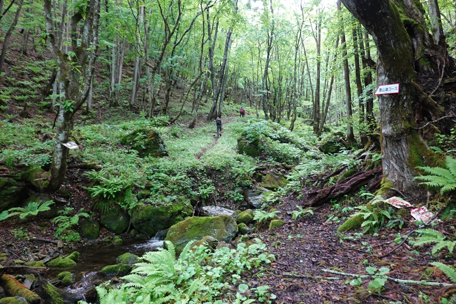 登りは沢沿いに歩いていくので渡渉もなんどか。 |
