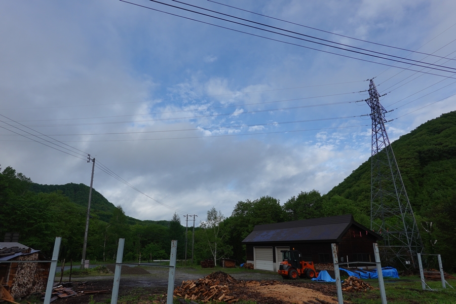 一晩中雨が降っていましたが、雨が上がり青空もチラリ。 |