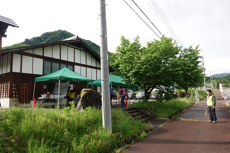 湯ノ花温泉交流センターで山開きの受付。 山開き初体験です。 (先週の安達太良は気付かなかったので、、) |
