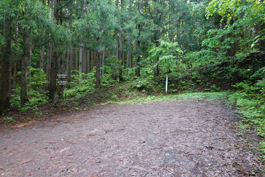 林道終点が登山口。 普段はこのスペースに駐車するようです。 |