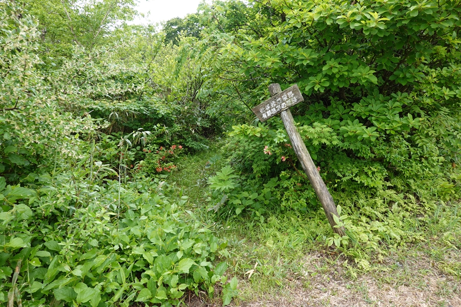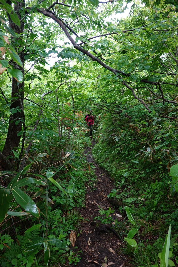 下山はこちらから・・しばらく背が低い話の中を歩くので中腰気味でした。 |