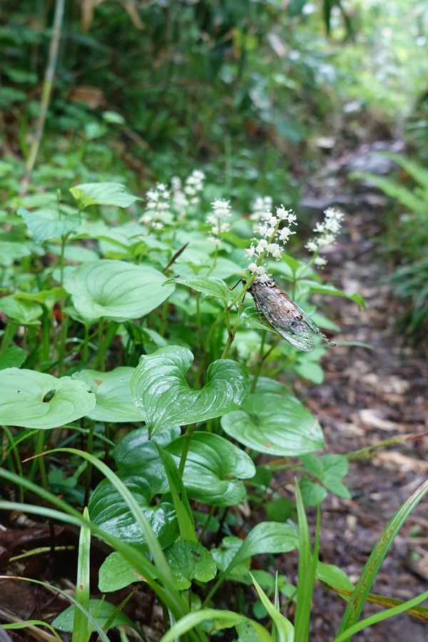マイヅルソウ。 と、一緒にセミもいた。 ヒグラシが大合唱してる感じだったので、お仲間? |