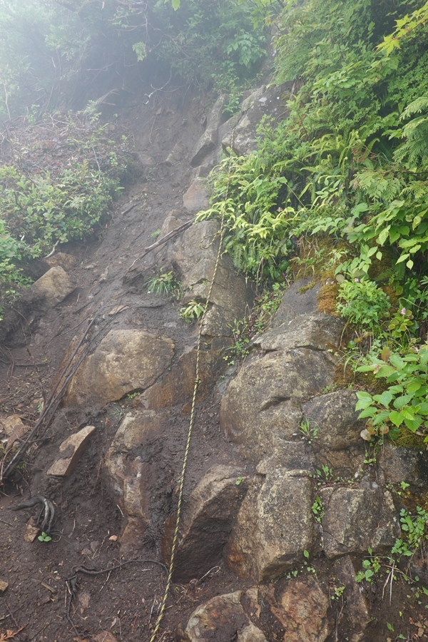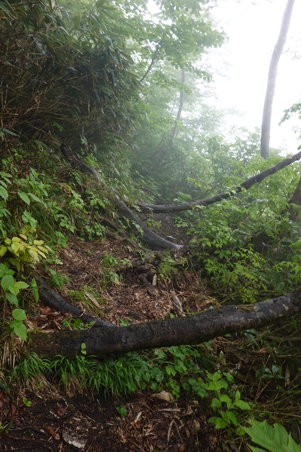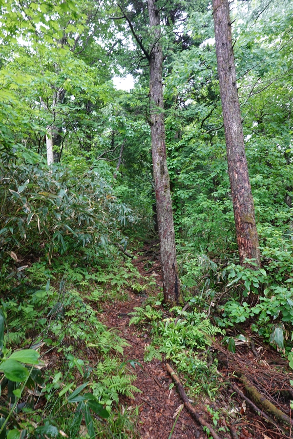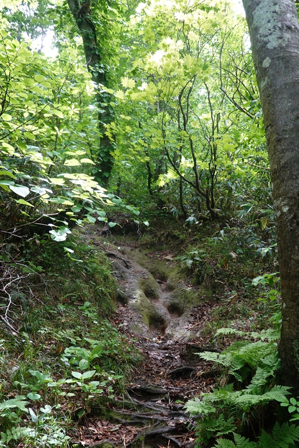 しばらくトラバース的な道・・根があったり、微妙に傾いていたりで、 滑りやすくもあって何気に歩きにくい道でした。 |