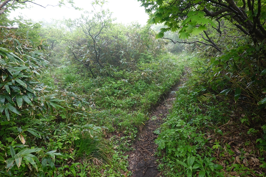 草木に触れないと歩けないところもそれなりにあり、カッパの上着も着こみました。 |