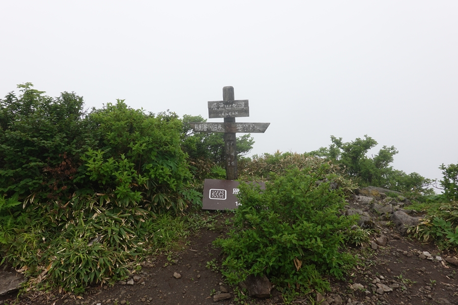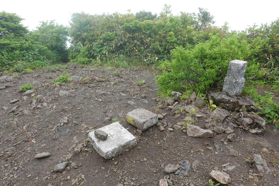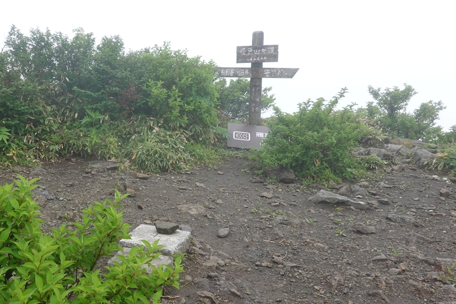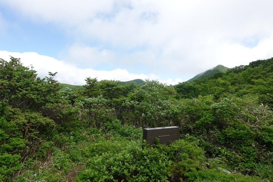 カケスヶ峰到着。 歩いてきた雁戸山からの山並みが見えてくれました。 |