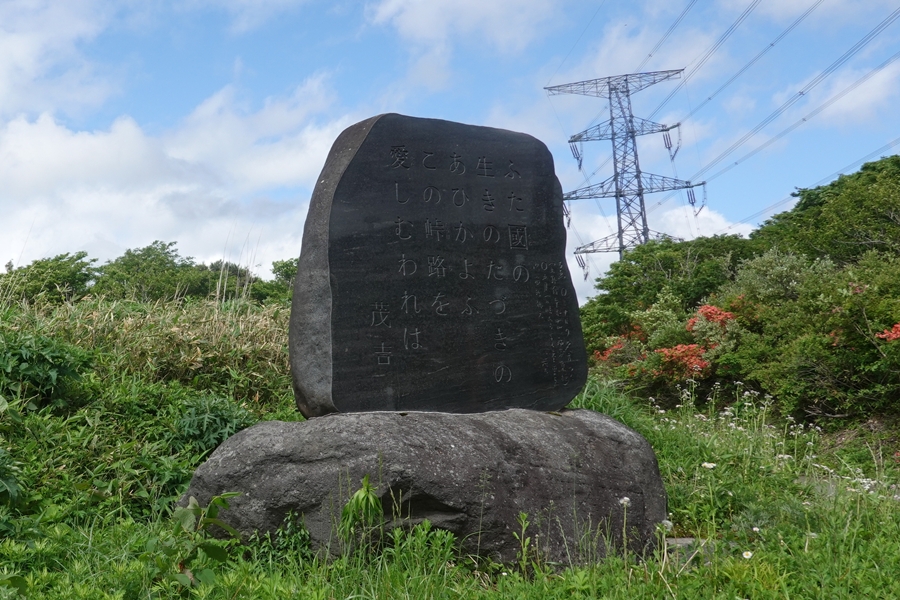 笹谷峠まで戻ってきました。 斎藤茂吉の歌碑・・ここで詠んだものとのこと。 |