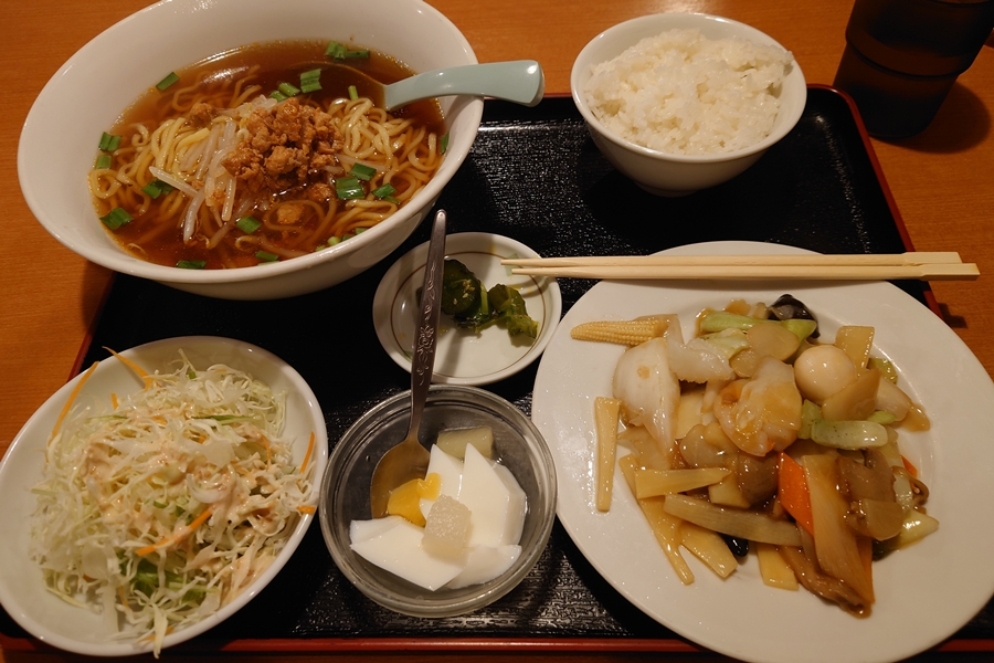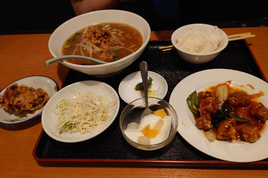 長男は酢豚定食。 その後、道の駅きらら289で車中泊。 |