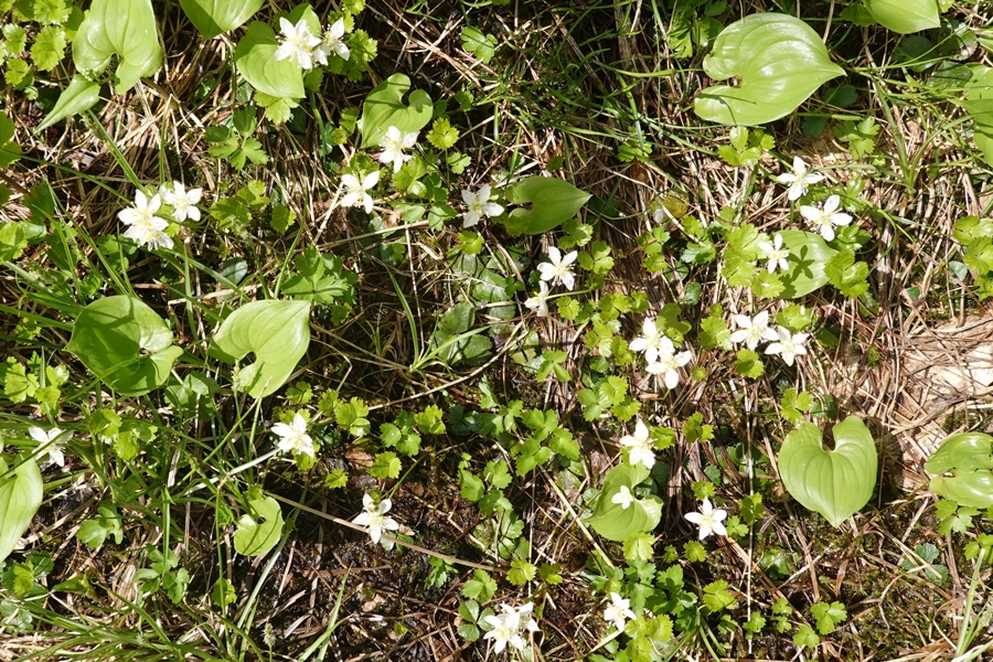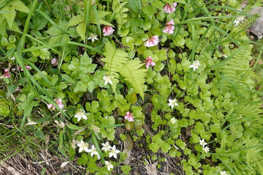 ミツバオウレンとイワカガミ |