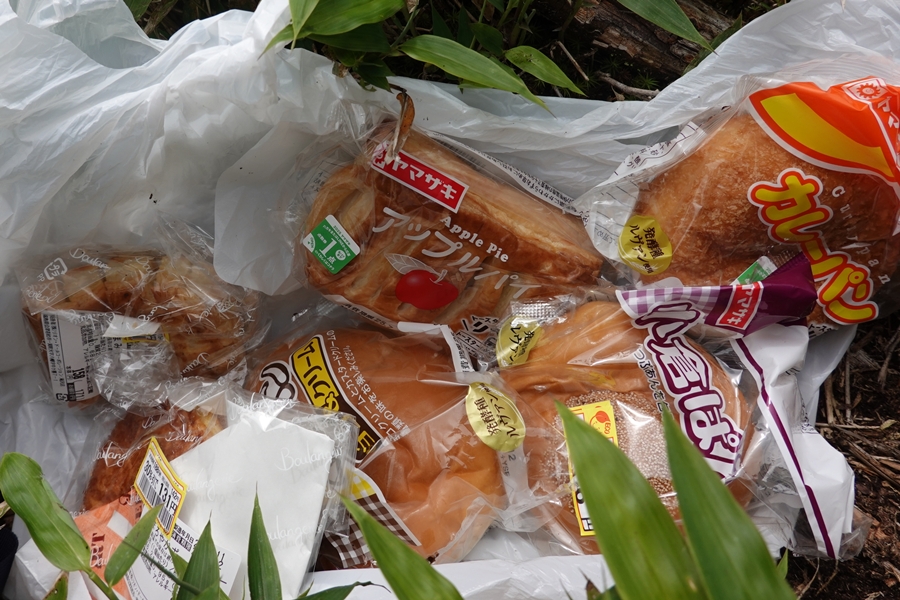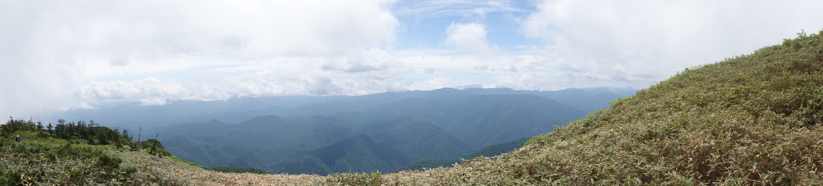 山頂奥の展望の良い場所で再び休憩。 ここまでの歩きで大分疲れたのに、嫌いな下りが1200mほど残ってます。。 |