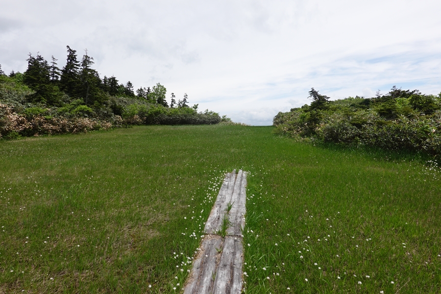 尾瀬っぽい湿原と木道が現れる。 いいですね〜。 |