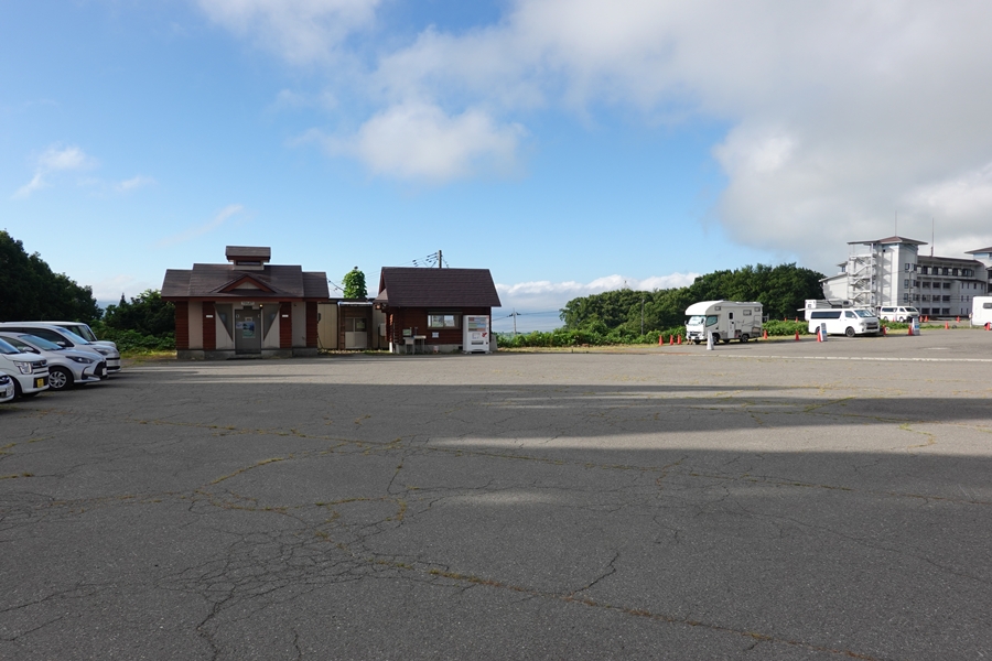 駐車場到着。 有料のRVパークスペースもありました。 トイレもあります。 |