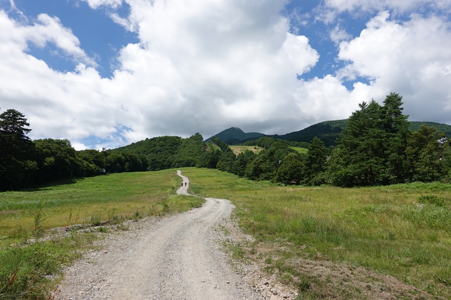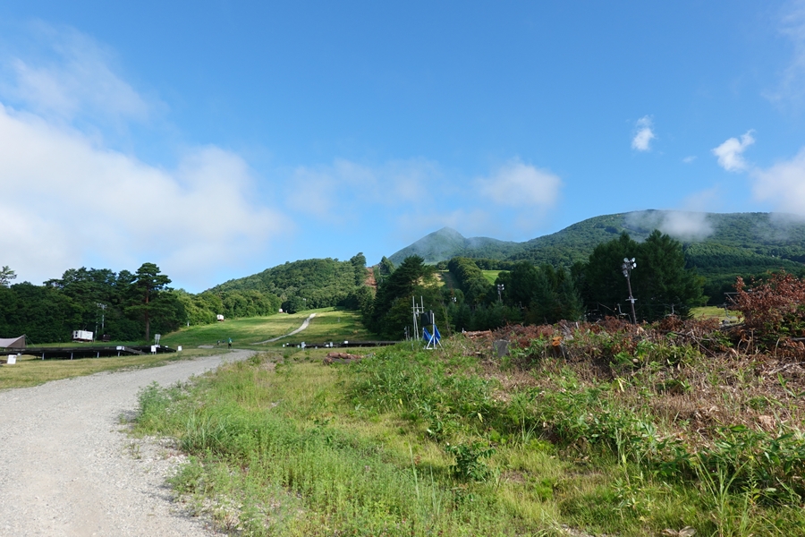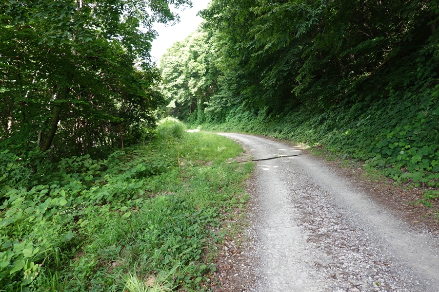 しばらくゲレンデ内の車道歩き・・すでに汗だく、、 |