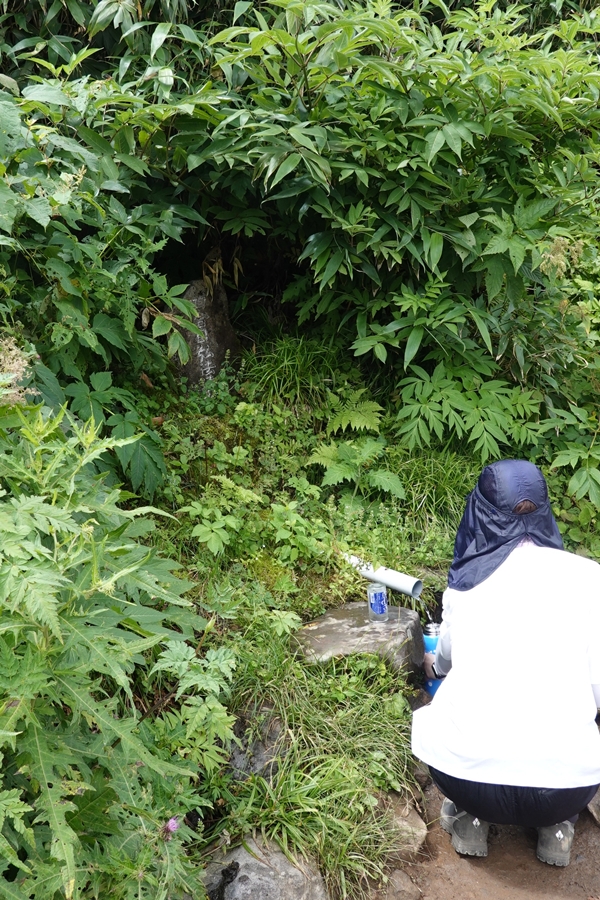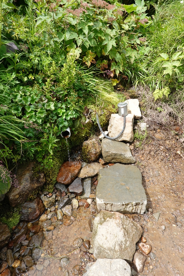 再び水分補給。 これまた冷たくて美味い! 高所にありながら枯れたの見たことない命の水。 |